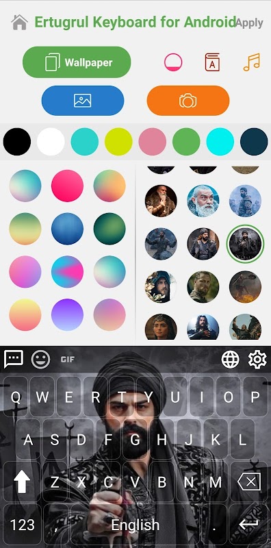 يتيح لك تطبيق لوحة المفاتيح هذا الحصول على لوحة مفاتيح بطابع Ertugrul / Osman مما يتيح لك الاختيار من بين صور Dirilis Ertugrul أو Kurulus Osman المفضلة لديك وتخصيص خلفية لوحة المفاتيح.