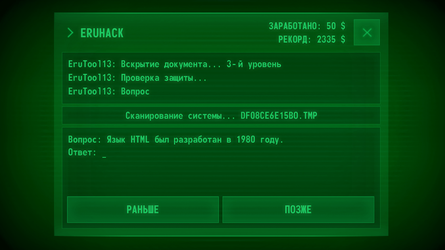 Вы — хакер, владеющий уникальной программой взлома. Программой Eruhack.