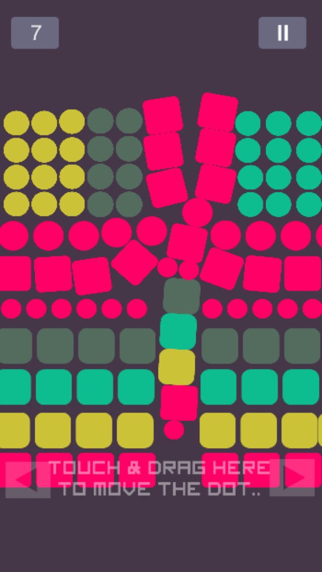 لعب الهروب من نقطة بسيطة جدا. المس أي مكان على الشاشة واسحب نقطة للتحرك اليسار أو اليمين لتجنب من العقبات.
