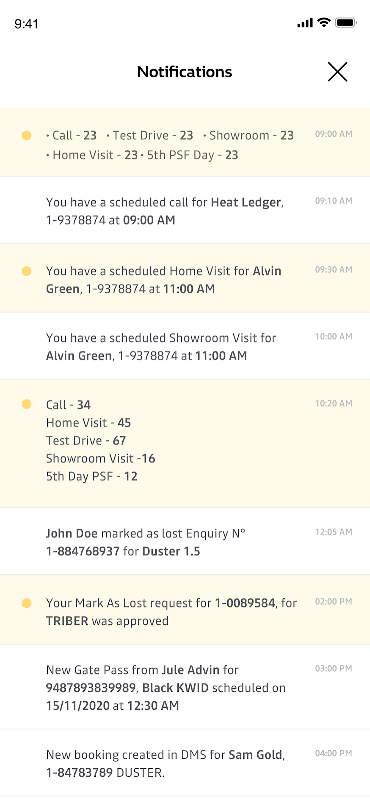 هذا التطبيق مخصص لاستخدام فريق مبيعات Renault India لإدارة عملية بيع السيارات الجديدة من البداية إلى النهاية ، بما في ذلك: