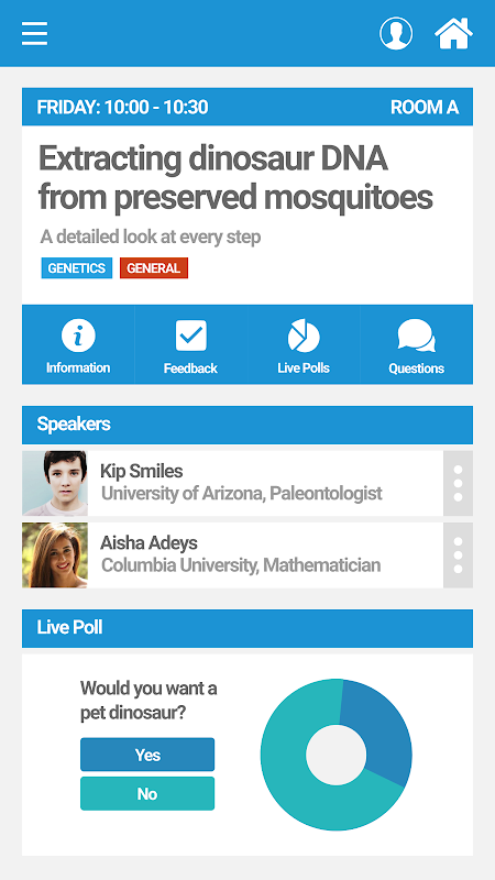 - Engage in live polls, submit feedback, and ask questions