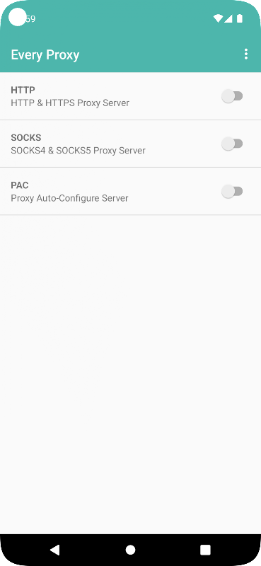 واجهة المستخدم لهذا التطبيق هي من خلال Every Proxy.