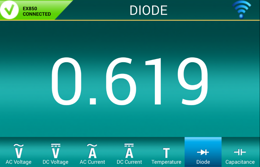 This ExView app allows your EX850 clamp meter to function in a manner similar to clamp meter and digital multimeter (DMM) models currently available with a detachable wireless, remote display. The advantage of the app however is that the display on the clamp meter remains intact and continues to function, displaying readings locally in addition to the remote display on the Android mobile device. Additionally, no PC or wireless transmitter/receiver dongle or other accessory is required to view readings remotely.