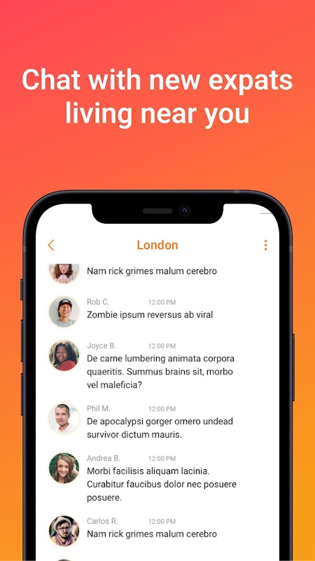 يطابقك ExpatBuddy مع المغتربين ذوي التفكير المماثل والأشخاص الدوليين الذين يعيشون بالقرب منك من أجل حياة أسهل وأكثر إرضاءً في الخارج. كوّن صداقات ، واحصل على النصائح والنصائح العملية التي تحتاجها وتواصل بشكل احترافي ، كل ذلك في مكان واحد. سواء كنت قد وصلت للتو وتحتاج إلى مساعدة في العثور على منزل أو وظيفة أو ترغب في تكوين صداقات في مدينتك الجديدة ، أو كنت تفتقد المنزل ، يمكن لـ ExpatBuddy المساعدة. تواصل بسهولة مع الأصدقاء الذين يحصلون على ما يشبه العيش في الخارج ، والدردشة ، والحصول على المساعدة التي تحتاجها والشعور بأنك في المنزل أينما كنت في العالم.