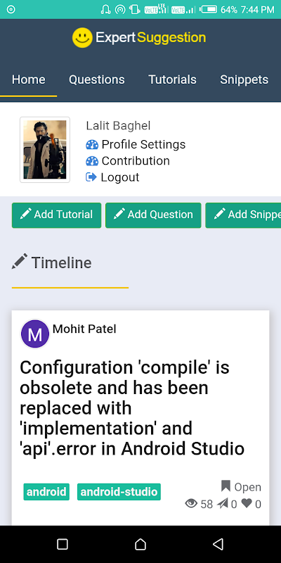 In Expert Suggestion platform developers and students also contribute there snippets and tutorials.