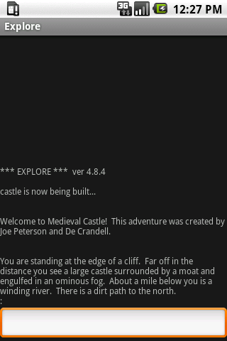 مستوحاة من هذا الكلاسيكية، فإن ابن عمي وأنا البقاء حتى وقت متأخر من الليل، واختراع عالمنا الخيالية الخاصة والكتابة الخاصة بنا مترجم لغة المغامرة، ودعا "استكشاف". في هذه العملية، أنشأنا مغامرات الثلاثة الأولى المدرجة في هذا التطبيق ( "الكهف"، "الألغام"، و "القلعة"). وخلافا لهذه الثلاثة الأولى، ويستند المغامرة الأخيرة "بيت مسكون"، على القديمة TRS-80 لعبة راديو شاك، وصوغه للمترجم مغامرة استكشاف في محاولة للحفاظ على إرثها هنا.