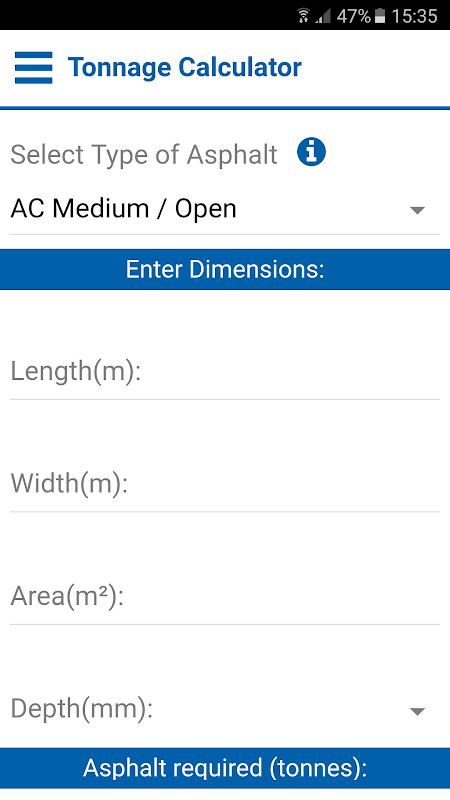 Calculator can be used to estimate how much Asphalt will be needed for a particular job.