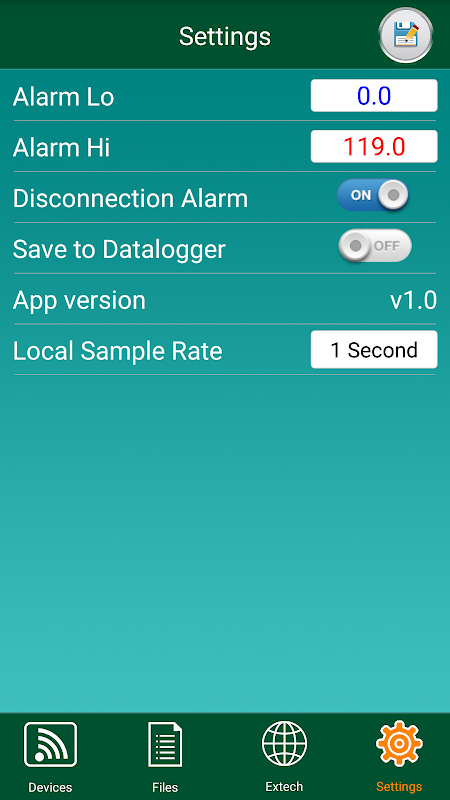 • تخزين أكثر من 15 ألف قراءة باستخدام وحدة تسجيل البيانات اللاسلكية DAT12، لتنزيلها على الهاتف أو الجهاز اللوحي، مع إمكانية برمجة حجم ملف تسجيل البيانات