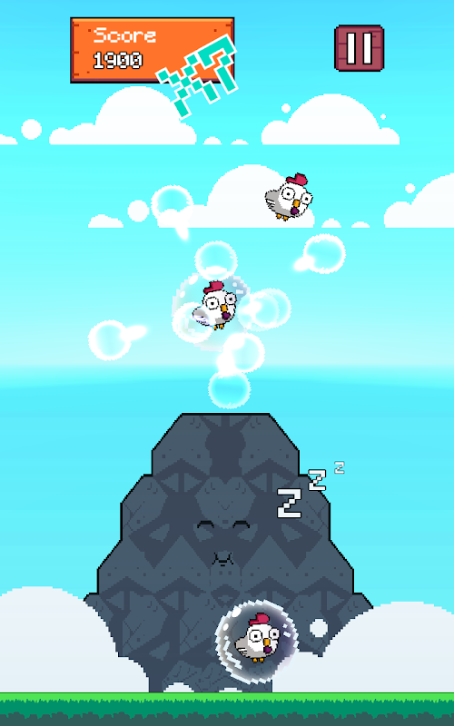 Your task is to save all the chickens without waking up the big volcano, to prevent the bombs from falling, if the bomb is activated, the big volcano will wake up, when revenge will throw a few stones at you, do not let the red stones reach the floor.