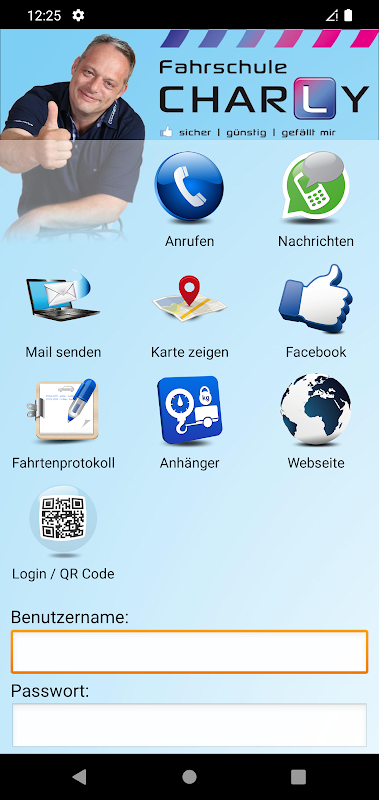استخدام التطبيق في Fahrschule شارلي لتتلامس مع مدرسة لتعليم القيادة الخاصة بك في ألمانيا بيرغ.
