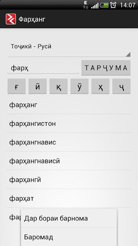 Теги: dictionary, translation, translator, universal, thesaurus, tajik, russian, переводчик, перевод, словарь, словари, таджикский, русский, таджикско-русский, русско-таджикский, таджикско-таджикский(толковый словарь), тоҷикӣ, русӣ, тоҷикӣ-русӣ, русӣ-тоҷикӣ, тоҷикӣ-тоҷикӣ, фарҳанг, луғат, лугат, lughat, farhang, tojiki.