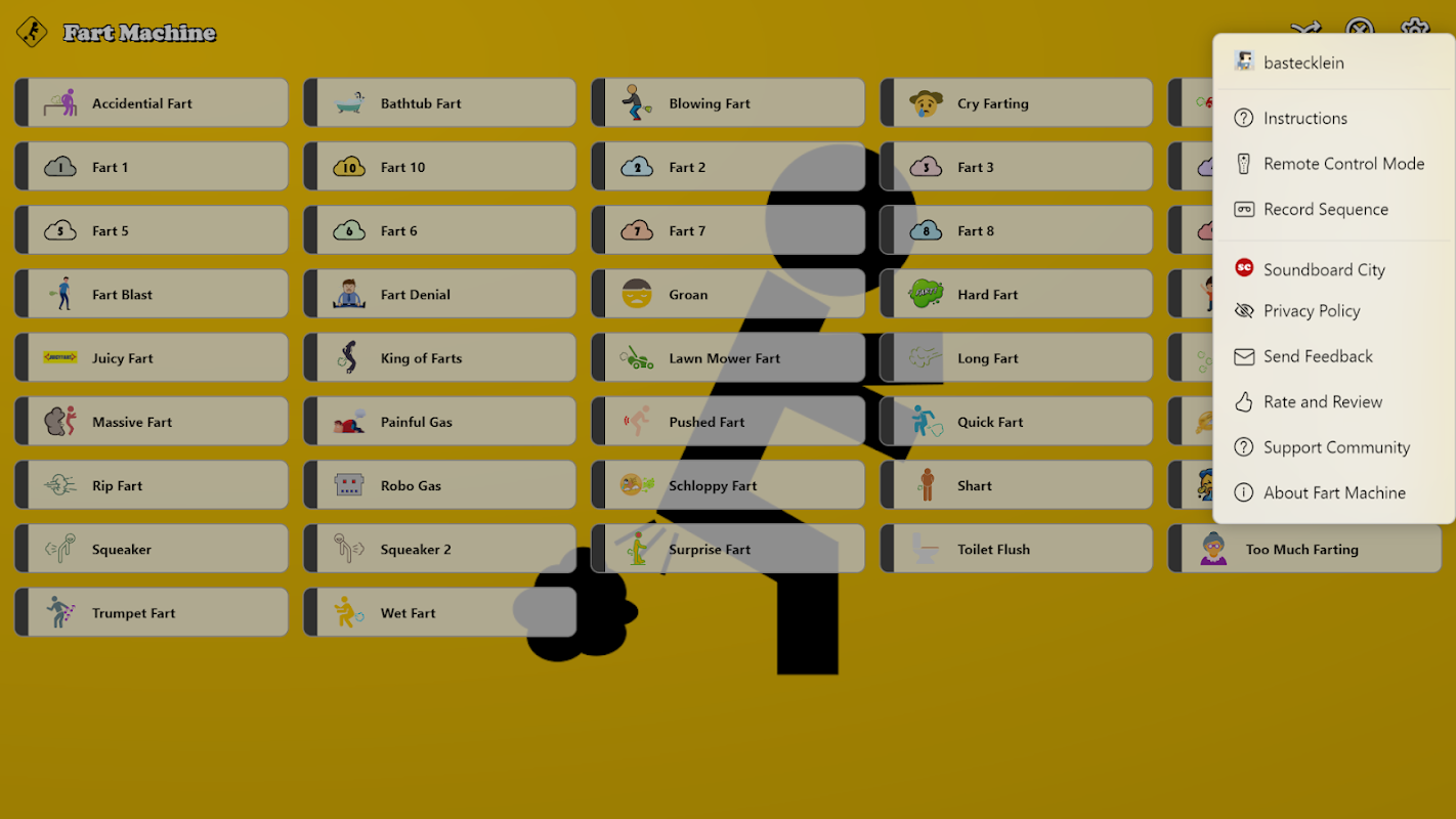 ملاحظة - تقوم Fart Machine بتشغيل المؤثرات الصوتية ذات الصلة فقط. في الواقع لا يولد رائحة! ليس للأطفال!