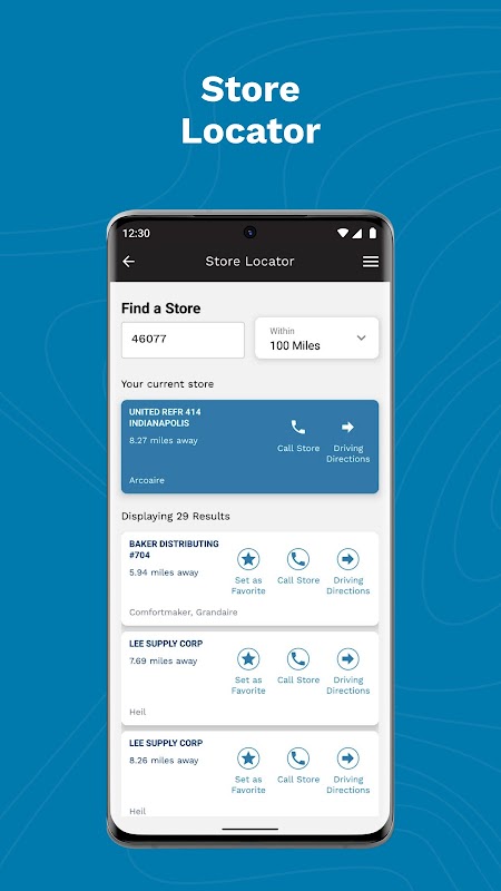 - تحديد موقع أقرب مركز قطع غيار: استخدم نظام تحديد المواقع العالمي (GPS) للعثور على أقرب مركز مبيعات سريع لقطع غيار OEM والحصول على الاتجاهات مباشرة من التطبيق.