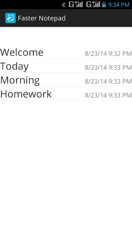 Faster notepad is designed to look like a paper notepad, and is just as simple to use. When you open Faster notepad, you’ll see a list of all notes you’ve created. To add a new note, tap on the “+” button at the bottom of the screen. The first line of text will automatically be used as the title.
