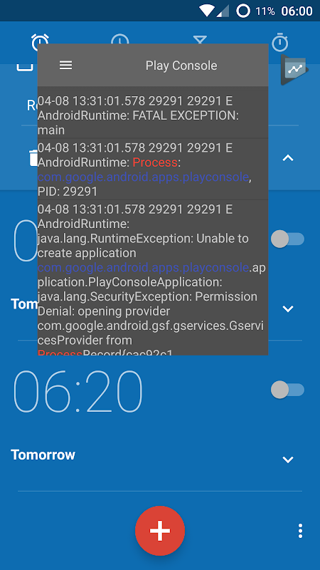 تعطل التطبيق سجل وتظهر السجلات