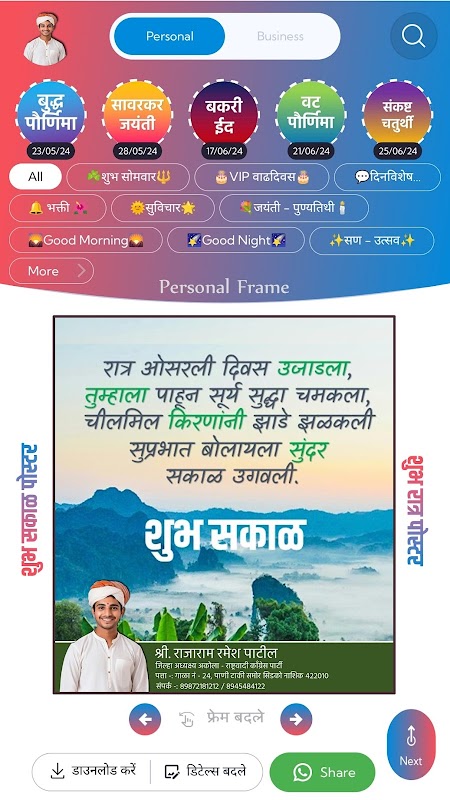 ملصق المهرجان مع تطبيق الصورة والاسم لمشاركة ملصقك الجاهز في يوم المهرجان أو يوم خاص لعائلتك وأصدقائك لتحقيق رغباتك. من خلال اختيار أي من هذه الملصقات، يمكنك وضع صورتك واسمك عليها ومشاركتها مع الأشخاص والبقاء نشطًا على وسائل التواصل الاجتماعي.