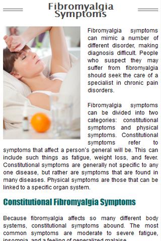 Description of fibromyalgia symptoms. Symptoms of fibromyalgia can mimic a number of different disorder, making diagnosis difficult.