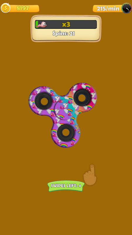 You have 5 swipes to give maximum rotation to your fidget spinner and set a new spin record. Swipe left/right with finger to spin your fidget and wait for it to stop and swipe to collect spin reward. Swipe properly to achieve maximum spins and collect maximum reward. Compete your friends by setting and beating max spin record. Unlock more spinners and upgrade your finger fidget spinners to achieve maximum spin.