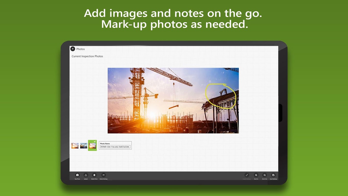 • إضافة ملاحظات وصور لأسئلة البند. يمكن تمييز الصور بسهولة.