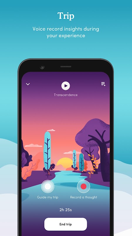 يتيح وضعنا غير المتصل بالإنترنت ، والموسيقى المخدرة ، والتأملات المخدرة ، ومرئيات الرحلة للمستخدمين الانغماس في تجربة مخدر والتعمق في الداخل ، وخالية من الانحرافات. هذا يشمل:
