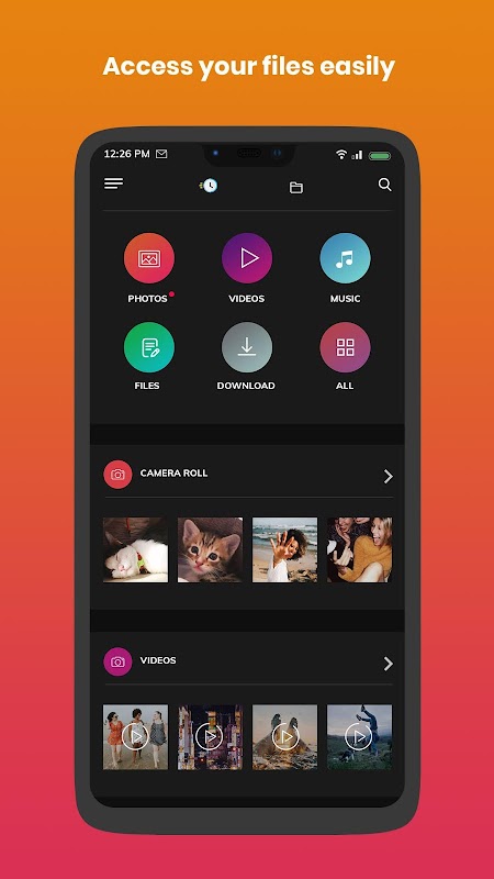 File Manager : Find all of your files or view them by category from the home screen: images, videos, music, apps, downloads, favorites, and recent folders. This file explorer helps you to reach all your files within a few taps.