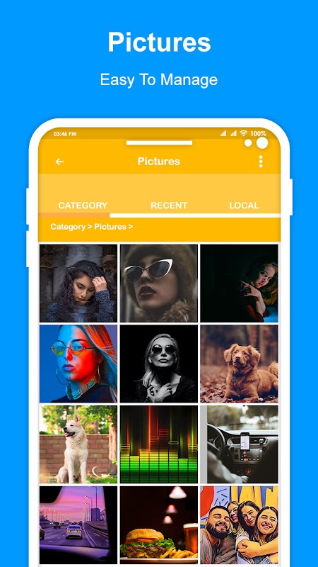قم بإدارة ملفاتك كما تفعل مع الكمبيوتر المحمول أو الكمبيوتر باستخدام قص ونسخ ولصق وإرسال وإخفاء وإنشاء وإشارة مرجعية متعددة حسب التحديد. يدعم File Manager أيضًا تنسيقات ملفات متعددة ، بما في ذلك الموسيقى ومقاطع الفيديو والتسجيلات الصوتية والصور والمستندات.