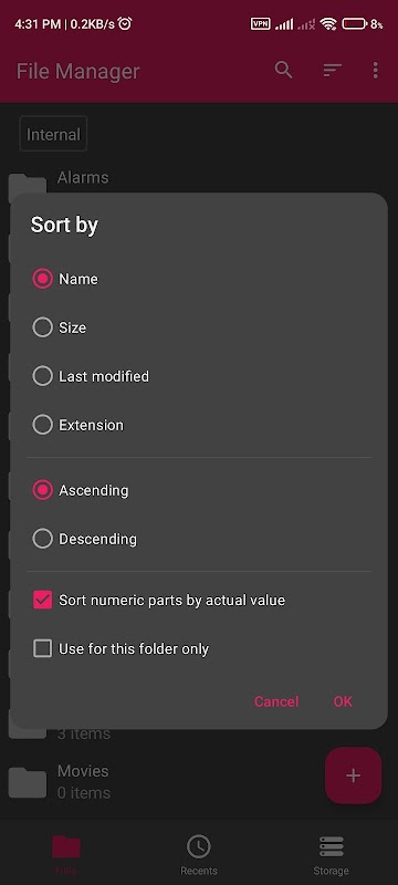 جرب تطبيق File-Manager (Lite) ، حيث يمكنك: