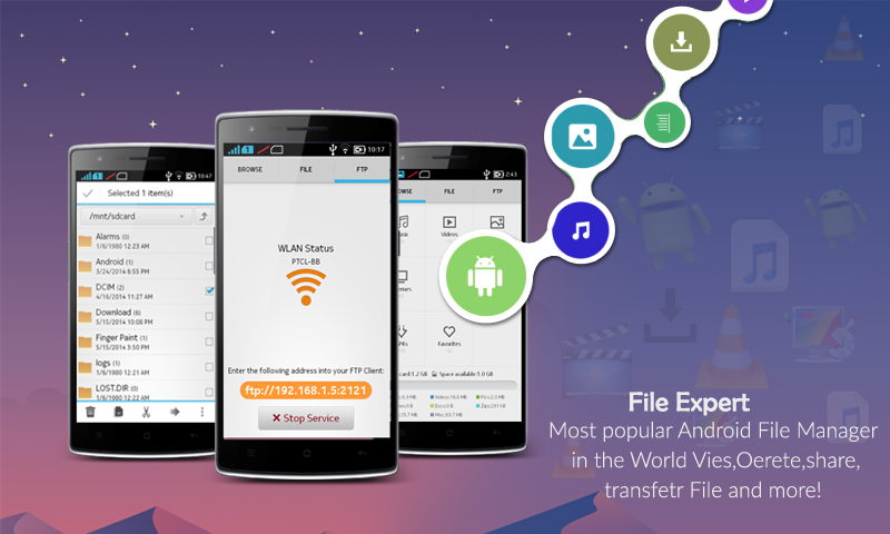 واحدة من أنجح مدير ملف الهاتف الروبوت. يمكنك من السهل تصفح الموسيقى والفيديو والفيديو والصور والملفات الرمز البريدي والوثائق وملفات التطبيق الروبوت وهلم جرا. يمكنك أيضا بسهولة لنسخ، نقل، حذف الملفات، أو تحميل الملفات إلى خدمة التخزين السحابية.