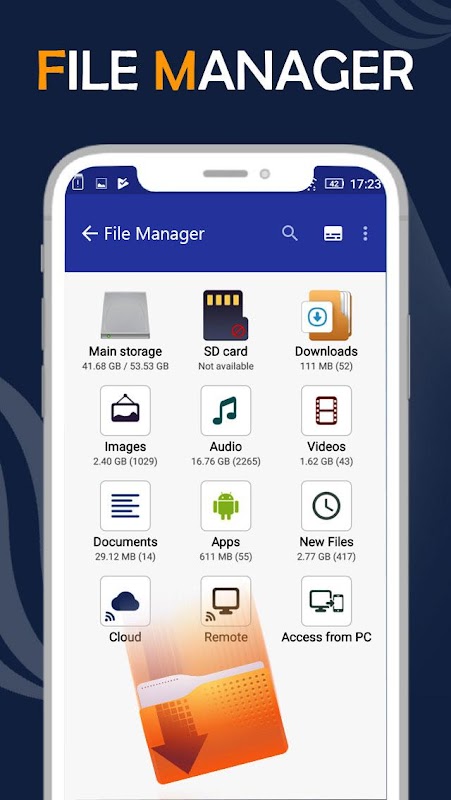 باستخدام مدير التطبيقات هذا لنظام Android ، يمكنك بسهولة إدارة ملفاتك ومجلداتك على الجهاز وإدارة التخزين المحلي والبعد / السحابي.