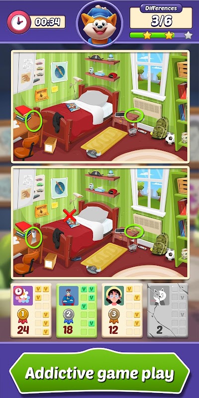 أدخل عالم الرسوم المتحركة المجنون من بطولة Detective K و Billy Dog و Bobby Pig والتمتع بمستويات التحدي! يجب عليك الانضمام إلى الدورة عبر الإنترنت للعثور على الاختلافات في الصور واستخدام أدوات قوية لتمرير المستويات. حل الألغاز ، والعثور على الأشياء الخفية لمساعدة المحقق K في العثور على الصور المفقودة للسيد بوبي بي.
