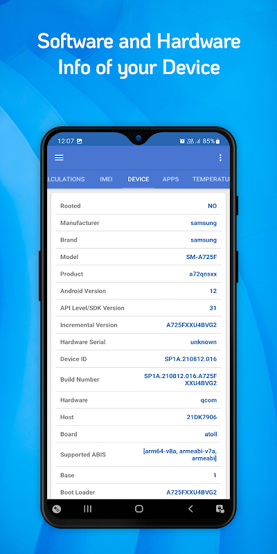 يمكن التحقق من جميع معلومات الهواتف المحمولة ويمكنني العثور على تفاصيل هاتفي جنبًا إلى جنب مع تفاصيل البطارية ومعلومات النسبة المئوية للبطارية. إذا كنت أرغب في العثور على IMEI & IMSI UID الخاص بجهازي ، فانتقل في علامة تبويب IMEI للتطبيق.