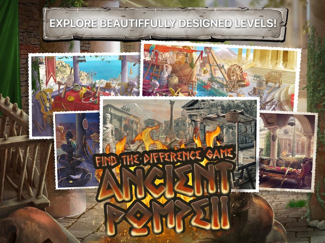 هل أنت مستعد للعثور على لعبة الصورة الأكثر إثارة للاهتمام؟ استمتع بالرسومات الجميلة في لعبة العثور على لعبة الفرق - بومبي القديمة واستمتع بقضاء وقت ممتع لساعات. يمكنك العثور على الاختلافات في صورتي أشهر موقع أثري في العالم. سيساعدك تطبيق العثور على الاختلافات في تحسين مهارات الملاحظة وجعل قدراتك المعرفية أقوى. أيضا ، العثور على ألعاب الفرق جيدة للتركيز والتركيز. قم بتثبيت لعبة فرق الصور الموضعية هذه خطوة إلى عالم بومبي القديم في الوقت الحالي. العب لعبة الاختلافات الموضعية لدينا ، واختبر تركيزك وكن أفضل لاعب بين أصدقائك. تقبل هذه البقعة التحدي الفرق وتضيع في مدينة بومبي القديمة اليوم.