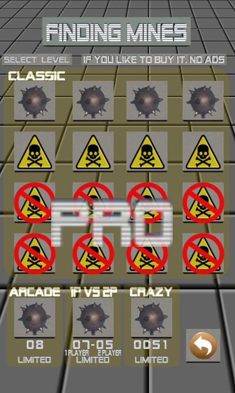 * This version of "Finding Mines" is free, with ads and limited in games and difficulty levels. If you like to buy the full and ad-free version of "Finding Mines Pro".