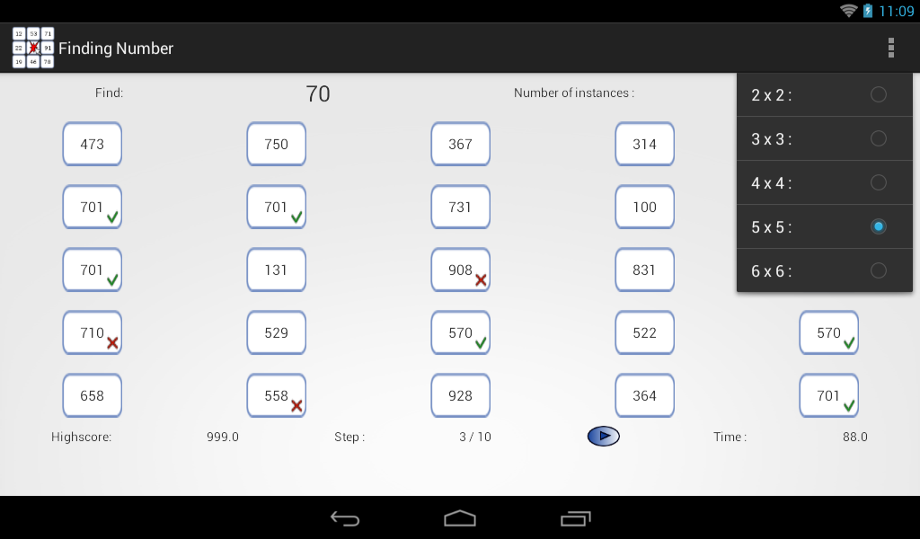 حدد عدد من العدد النتيجة عن طريق الضغط على المكان الصحيح. محاولة للعثور على كافة مطابقة عدد بأسرع وقت ممكن.