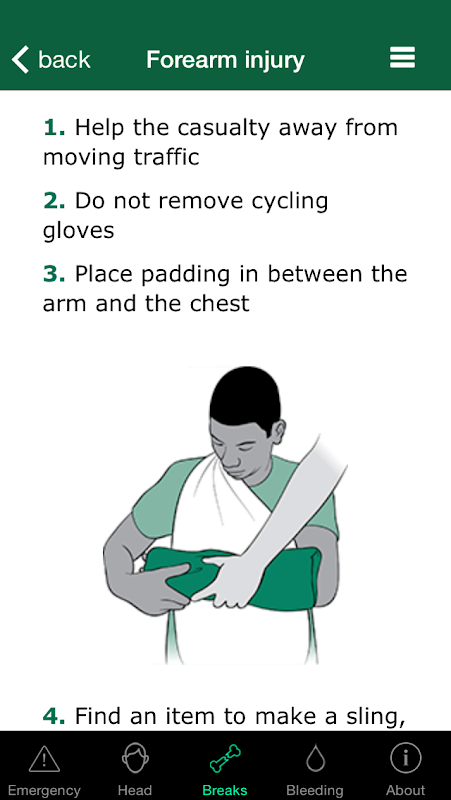 This app is targeted specifically at cyclists and is based on the most common injuries experienced by cyclists on Britain's roads. We want all cyclists to know first aid, so that they could be the difference between life and death in an emergency. The advice in this app is based on our First Aid Manual and advice from our medical experts.
