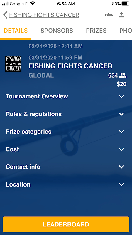 قم بإنشاء دورات صيد وإدارتها على الهاتف المحمول: الصيد والإفراج ، البطولات التقليدية حسب الوزن أو الطول ، البطولات (نمط المباراة) وجهاً لوجه ، متعددة الأيام (اليوم 1 + اليوم 2 + اليوم 3) ، البطولات القائمة على النقاط ، الصورة أو فيديو. هذا هو أفضل وأسهل منصة مع معظم الخيارات لإدارة الحدث الخاص بك. FishDonkey هو مستقبل Tournament Fishing®.