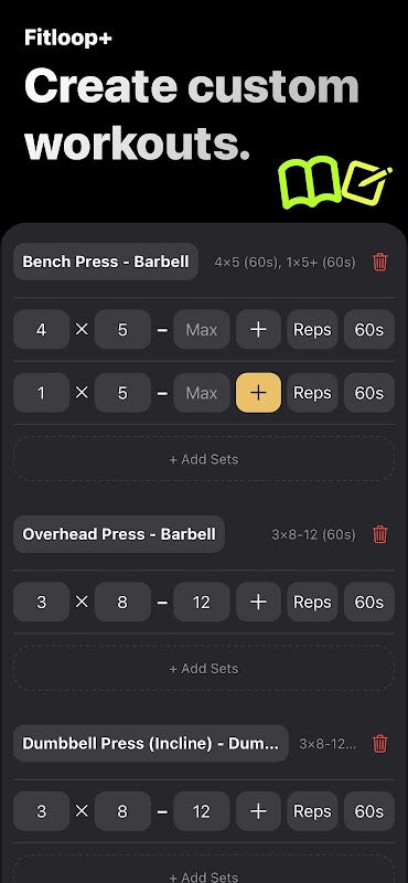 ○ تسجيل سريع للتمارين - تتبع المجموعات بنقرة واحدة مع مؤقت راحة ومكتبة تمارين شاملة