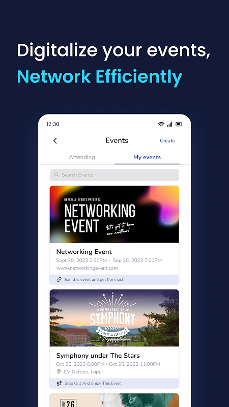 ليس ذلك فحسب، فإن Fizvizz يجعل من السهل عليك التواصل مع العملاء أو المتعاونين المحتملين من خلال السماح لك بإنشاء أحداث ودعوة الحضور للتواصل. يمكنك تتبع جميع الحاضرين ومتابعتهم بعد ذلك، كل ذلك داخل التطبيق.
