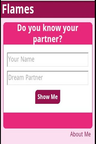 This is a fun game which will calculate the relationship (friendship, love, affection, marriage, enemy, sister) you are going to have with your dream partner. You can call it as a relationship calculator or love calculator but this will calculate the relation using the names of you and your partner. For more details visit http://flamesgame.appspot.com/