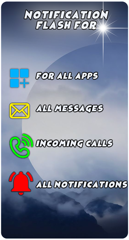تنبيه الفلاش الوامض: ستمنحك المكالمات والرسائل النصية إخطارات ضوئية بالمكالمات الواردة والرسائل النصية. ميزة تنبيه الفلاش متاحة أخيرًا لهواتف Android. باستخدام هذا التطبيق ، ستتمكن من الرد على أي مكالمة بسرعة وتجنب فقدان مكالمة الاتصالات المهمة عندما لا تتمكن من سماع نغمة رنين هاتفك.