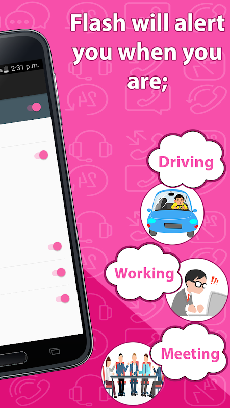 أفضل فلاش مجانا على دعوة / SMS التطبيق. تمكين وامض فلاش LED مصباح يدوي للمكالمات ورسائل الرسائل القصيرة. وميض الفلاش على تنبيه المكالمة عندما تلقيت مكالمة ودخل. عند رنين الجهاز أو تلقي رسالة قصيرة SMS أو رسالة وسائط متعددة ، يتم تنبيه الفلاش عند اتصالك بالرسائل القصيرة وتنبيهات وامض الرسائل القصيرة. تعد تنبيهات فلاش متعددة الألوان عند الاتصال أداة ذكية لتذكيرك بالمكالمة الواردة أو الرسائل القصيرة باستخدام مصباح الكاميرا. لذا ، فإن هذا الفلاش عند الطلب والفلاش النهائي على الرسائل القصيرة يخطرك بوضوح من خلال تنبيهات الفلاش المزودة بمصابيح LED.