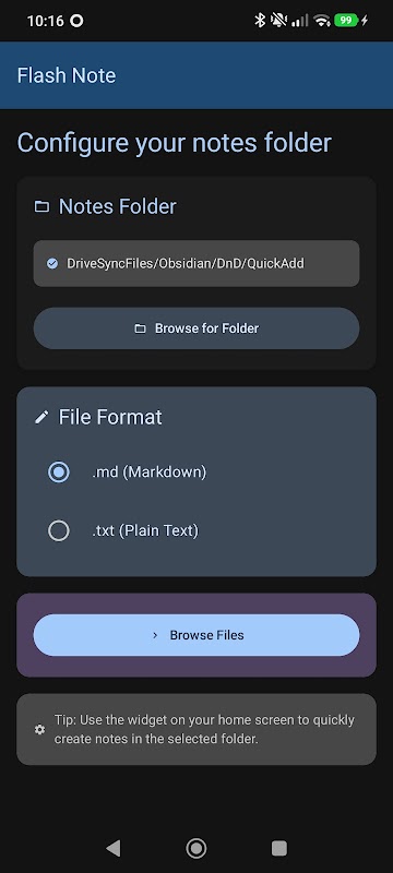 FlashNote هو أسرع طريقة لحفظ أفكارك وروابطك وملاحظاتك مباشرةً في ملفاتك. لا حاجة للتسجيل، ولا استخدام للخدمات السحابية، ولا تعقيدات - فقط تدوين فوري للملاحظات وحفظها في المكان الذي تريده بالضبط.