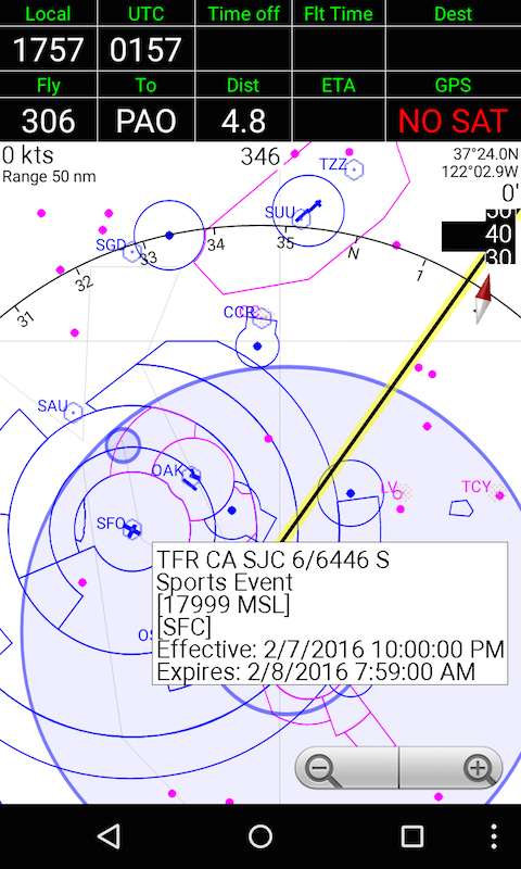This application is NOT approved for navigation. Always have proper navigation instruments and charts in your aircraft.