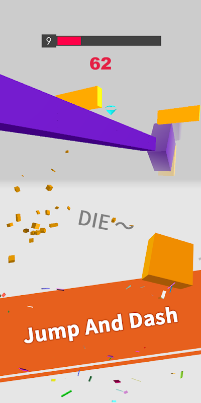 Flippy Cube Dash - Endless Jump is a fun endless runner game where you play as a cube and must jumping the trap and collecting diamonds.