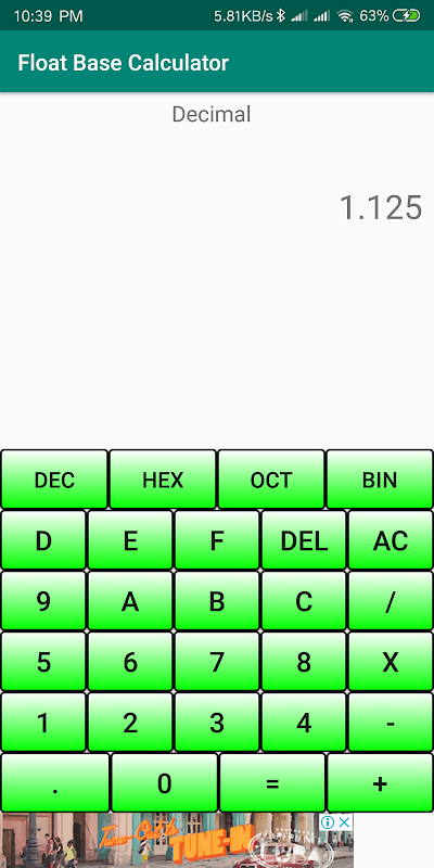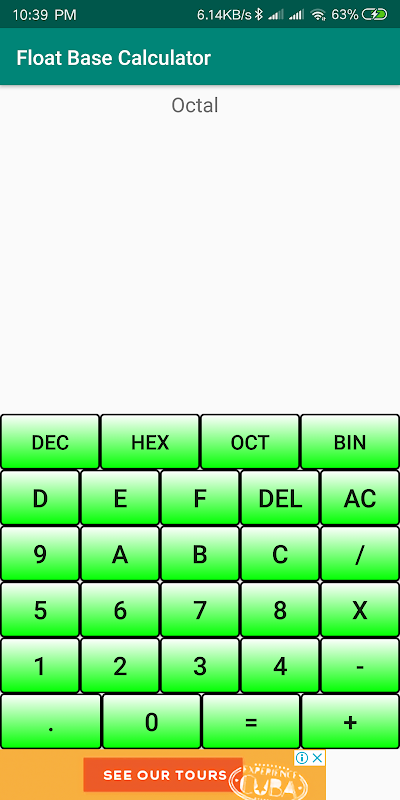 In this calculator You will able to convert any kinds of number. This application will able to convert folating point number in Binary, Hexa-Decimal, Octal, Decimal . You can also do any kinds of Mathmetical operation in number system. This is mostly important for HSC student along with CSE student.