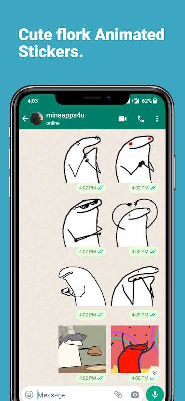 اجعل محادثتك أكثر مرحًا مع ملصقات Flork Animated For WhatsApp.