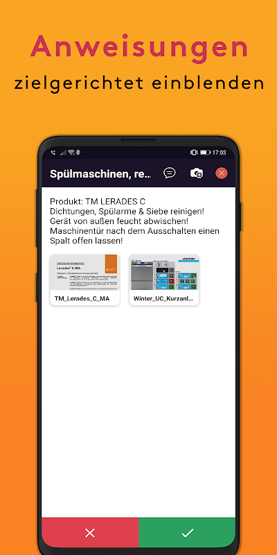 الموظفون غير المهرة: بمساعدة الصور ومقاطع الفيديو وملفات PDF ، يمكنهم تنفيذ مهام أخرى لهم بشكل مستقل. في حالة الانحراف عن المواصفات ، يمكن إرسال إشعارات تلقائية إلى أطراف ثالثة. يتم تقصير تدفق المعلومات من عدة أيام أو أسابيع إلى بضع ثوان!
