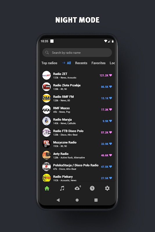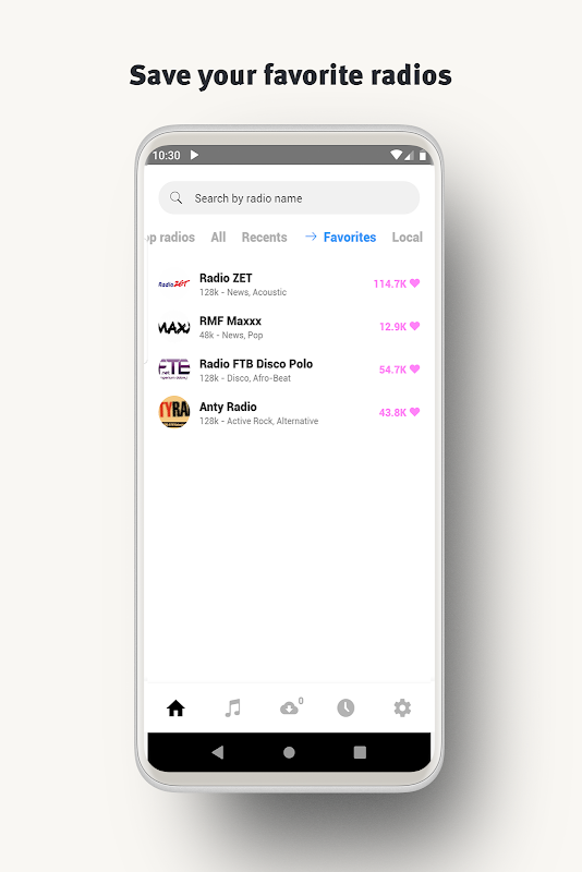 - أضف أجهزة الراديو المفضلة لديك بسهولة إلى قائمة المفضلة لديك