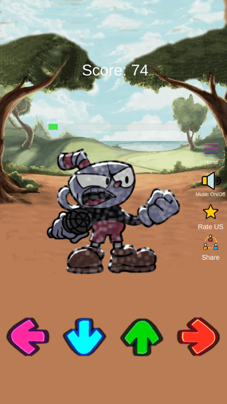 ماذا تفعل في لعبة FNF Cuphead Mod Test Character؟ تحتاج إلى تسجيل أكبر عدد ممكن من النقاط. كيف افعلها؟ قبل بدء اللعبة ، حدد حالة البطل والموسيقى التي تفضلها ، ثم انقر فوق تشغيل. بعد بدء اللعبة ، انقر فوق الأسهم الموجودة على شاشة جهازك واكسب النقاط. إذا سجلت 800 نقطة فهذه نتيجة جيدة للعبة. إذا تمكنت من الحصول على أكثر من 1000 نقطة ، فأنت رائع في FNF Cuphead Mod Test.