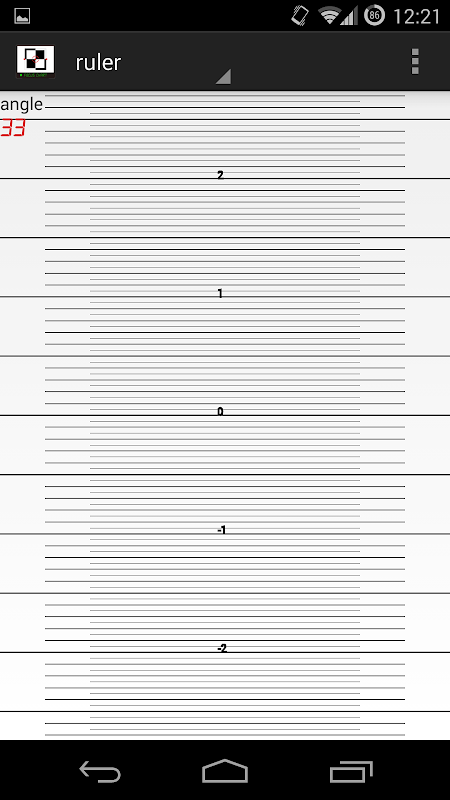 يعرض هذا المخطط سوى الحاكم. جعل التركيز على 0 خط وقياس التحول ضبط تلقائي للصورة على الفور. كما سبق، وضمان زاوية 45 درجة من الأفقي. يمكنك تمتد الحاكم أو الخروج مع لفتة قرصة إلى التكبير.